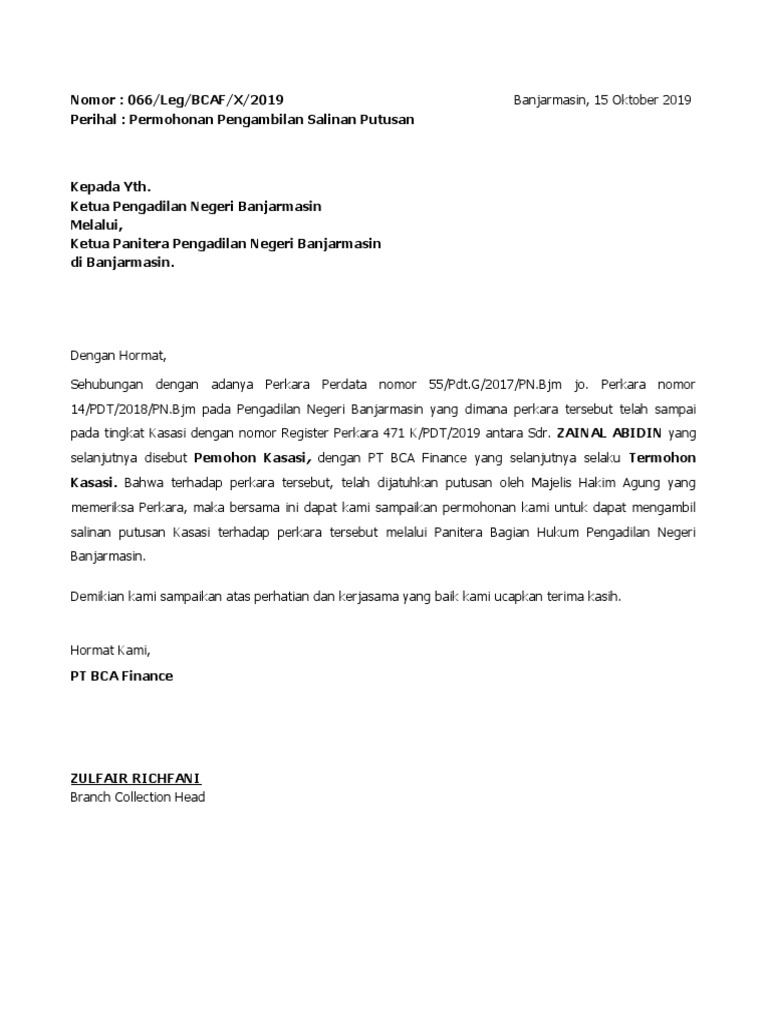 Surat Permohonan Salinan Putusan Pdf
